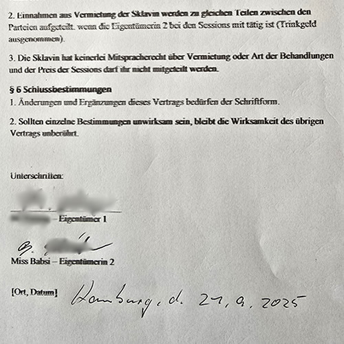 I can set the prices and negotiate the treatments. The proceeds from the session will be split 50/50 with her Master.